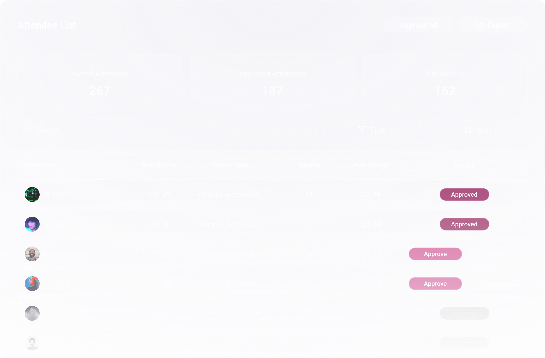 Optimized for speed and efficiency. Create events in seconds, manage check-ins in real-time, and browse through your audience data in views tailored for your team.